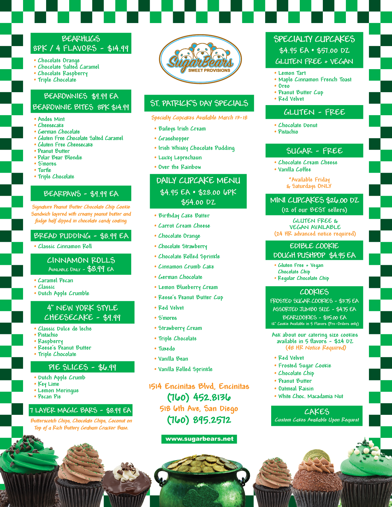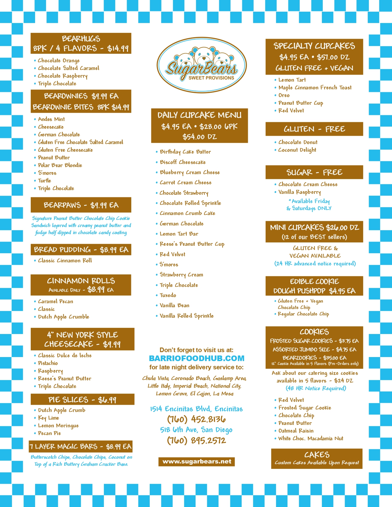 Each store has its own inventory and daily menu on San Diego